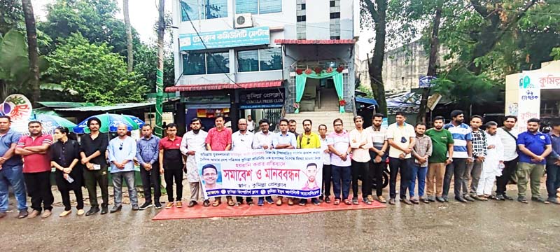 দৈনিক আমার দেশ কুমিল্লা দক্ষিণ প্রতিনিধি শাহ আলম সফির সভাপতিত্বে সমাবেশ ও মানববন্ধনে কুমিল্লা প্রেস ক্লাবের সাংগঠনিক সম্পাদক ইমতিয়াজ আহমেদ জিতুর সঞ্চালনায় মানববন্ধনে বক্তব্য রাখেন যমুনা টিভির কুমিল্লা ব্যুরো প্রধান রফিকুল ইসলাম খোকন চৌধুরী, কুমিল্লা প্রেস ক্লাবের সদস্য বৈশাখী টিভি কুমিল্লা প্রতিনিধি আনোয়ার হোসেন, আমার দেশ পাঠকমেলা কুমিল্লা জেলা সাধারণ সম্পাদক মোহাম্মদ আসাদুজ্জামান মনির, চ্যানেল টোয়েন্টিফোর কুমিল্লা প্রতিনিধি জাহিদুর রহমান, নিউজ টুয়েন্টিফোর কুমিল্লা প্রতিনিধি এইচ এম মহিউদ্দিন , খবরের কাগজ কুমিল্লা প্রতিনিধি জহির শান্ত, রুপসী বাংলা স্টাফ রিপোর্টার এনকে রিপন, কুমিল্লা নিউজ সম্পাদক জহিরুল হক বাবু, দেশ টিভি কুমিল্লা প্রতিনিধি সুমন কবির, কালের কণ্ঠ কুমিল্লা উত্তর প্রতিনিধি শাহীন আলম,নয়া দিগন্ত মাল্টিমিডিয়া প্রতিনিধি ফাহিম , বিজনেস বাংলাদেশের কুমিল্লা প্রতিনিধি আয়েশা আক্তার, সকালের সময় কুমিল্লা প্রতিনিধি ইবনুল হাসান রায়হান, আমার দেশ দাউদকান্দি প্রতিনিধি মোহন মিয়া, লালমাই প্রতিনিধি ইয়াকুব আলী নিমাল, কুমিল্লা রিপোর্টার্স ক্লাবের সভাপতি ও সারা বাংলার কুমিল্লা প্রতিনিধি রাসেল সোহেল, সাধারণ সম্পাদক মাহফুজ আনোয়ার সৌরভ, যুগ্ম সাধারণ সম্পাদক ও আজকের কুমিল্লার স্টাফ রিপোর্টার হাবিবুর রহমান মুন্না, সাংগঠনিক সম্পাদক ও বার্তা ২৪এর স্টাফ রিপোর্টার মঈন নাসের খান রাফি, অর্থ সম্পাদক ও জিটিভির উওর প্রতিনিধি মাইনউদ্দিন, ক্রীড়া ও সাংস্কৃতিক বিষয়ক সম্পাদক ও কুমিল্লা ডাকের ব্যবস্থাপনা সম্পাদক রুহুল আমিন চৌধুরী সুমন, ভোরের কলামের প্রতিনিধি ইয়াছিন মিয়া, কুমিল্লা ইয়ুথ জার্নালিস্ট অ্যাসোসিয়েশনের সাধারণ সম্পাদক ও খোলা কাগজের প্রতিনিধি শাহ ইমরান প্রমুখ।