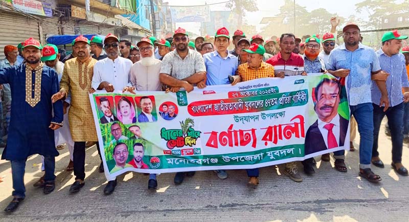 মনোহরগঞ্জে যুবদলের ৪৭তম প্রতিষ্ঠা বার্ষিকী উপলক্ষে বর্ণাঢ্য র্যালী
