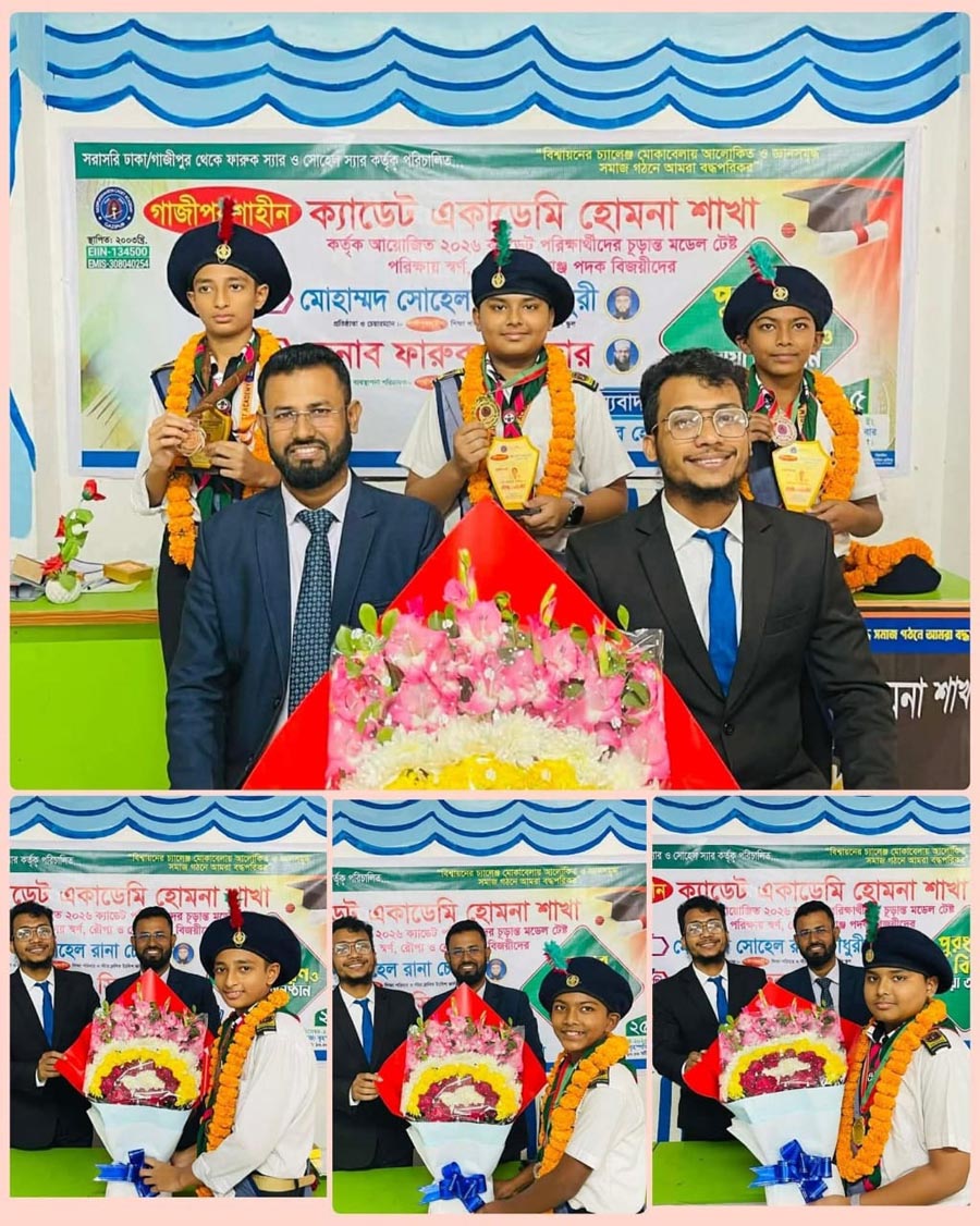 হোমনায় গাজীপুরশাহীন ক্যাডেট একাডেমির চূড়ান্ত মডেল টেস্টে মেধাবীদের পদক অর্জন